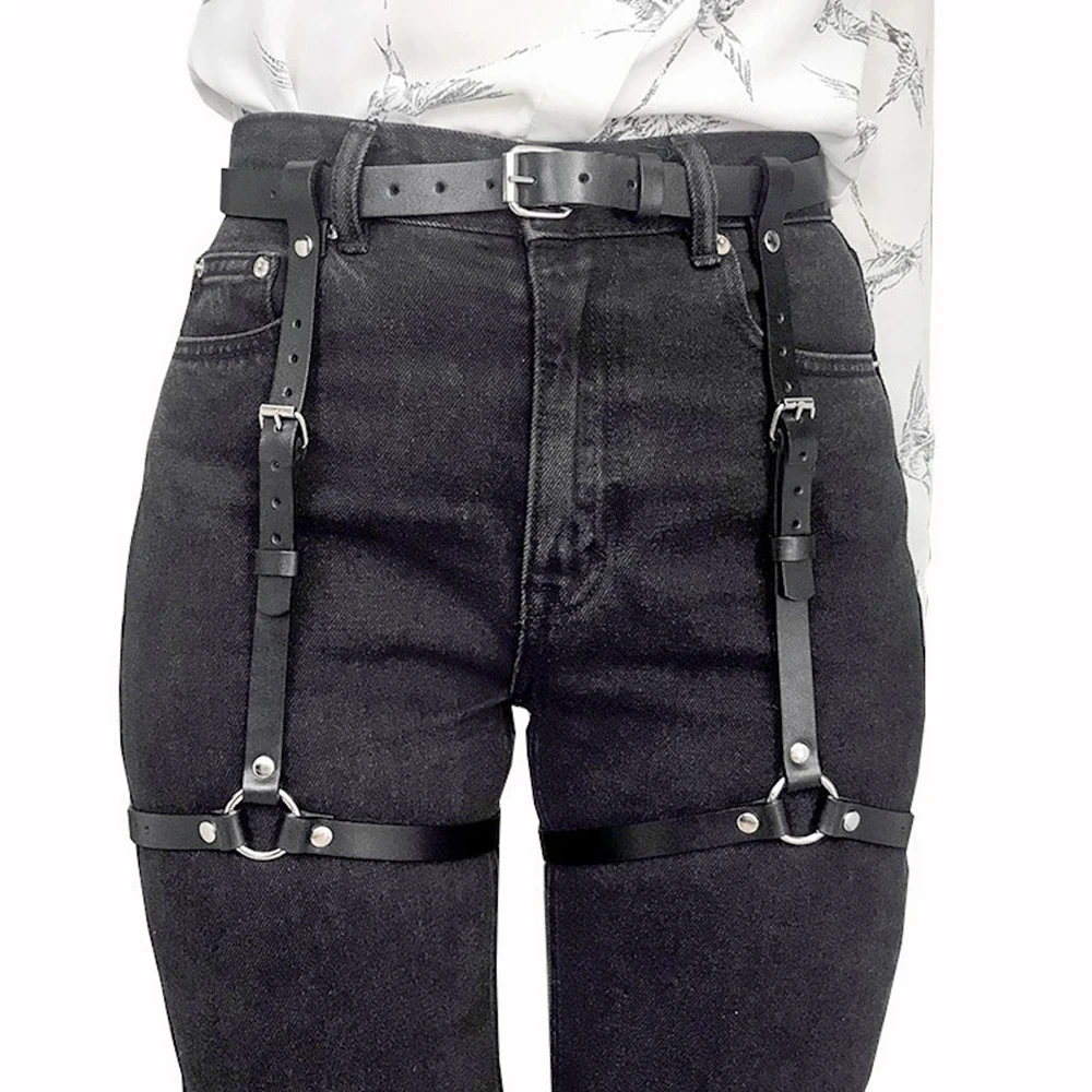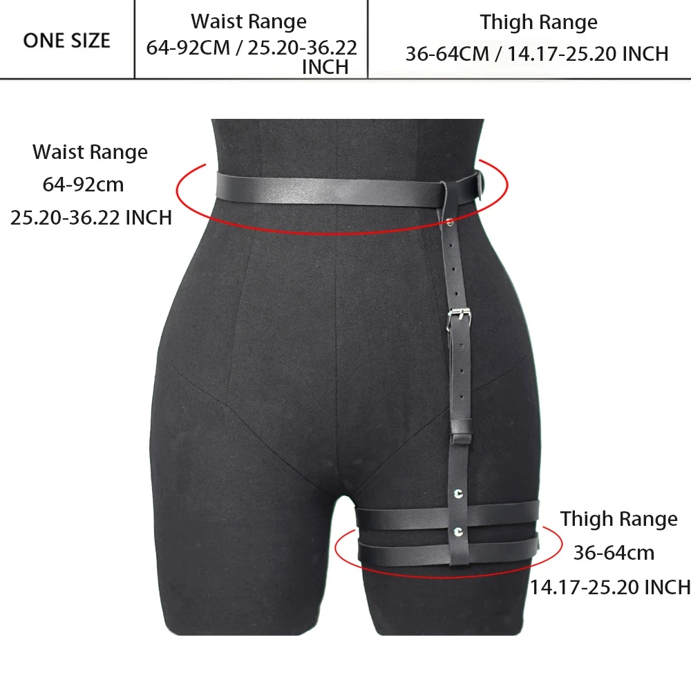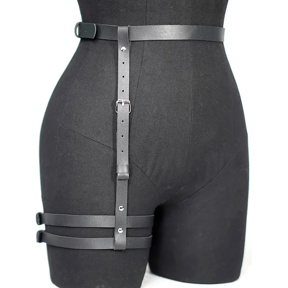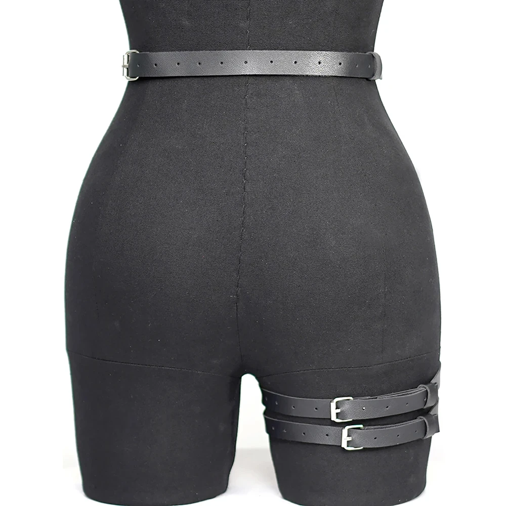 Fashionable Women’s Pu Leather Leg Harness Body Harness Breast Punk Gothic Leg Garter Belts Gothic Waist Belt Clothing Accessor